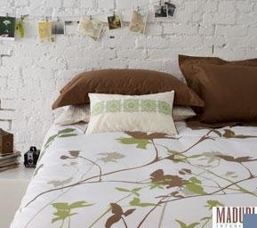 Inspired by the artful qualities of nature, Amanda brings the outdoors in. The soft cotton sateen set is adorned with vines and branches, and flowers in a palette tonal colors. Rich with depth and warmth, this set is sure to bring you at one with nature. Available in 2 colors; Amanda Purple duvet features our motif in shades of green and brown reversing to solid brown with coordinating shams in solid brown. Amanda Green duvet features our motif in shades of purple and tan, backed in purple cotton sateen with coordinating shams in solid green. Sets include duvet cover and two shams. -three piece set -300 thread count -button duvet closure -envelope sham closure -machine wash -imported